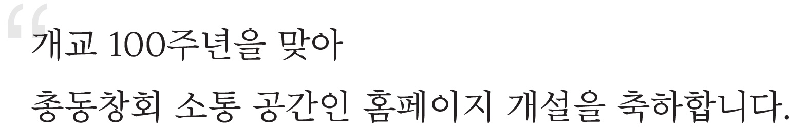 100주년 행사를 계기로 걸어온 100년의 영욕과 부침의 굴곡진 역사를 돌아보고, 걸어갈 미래 100년의 초석을 다지는 계기가 되기 바랍니다. 고맙습니다.